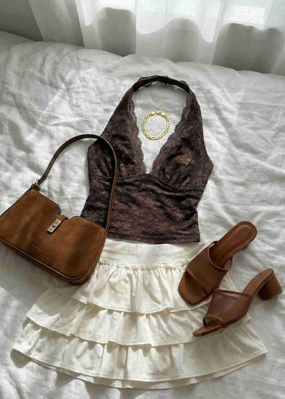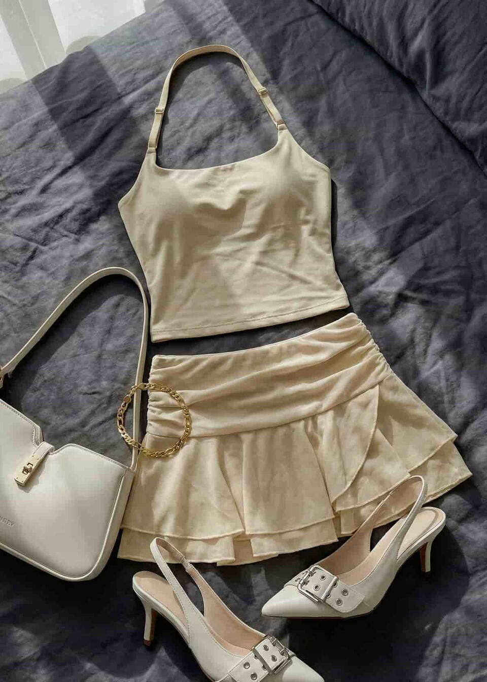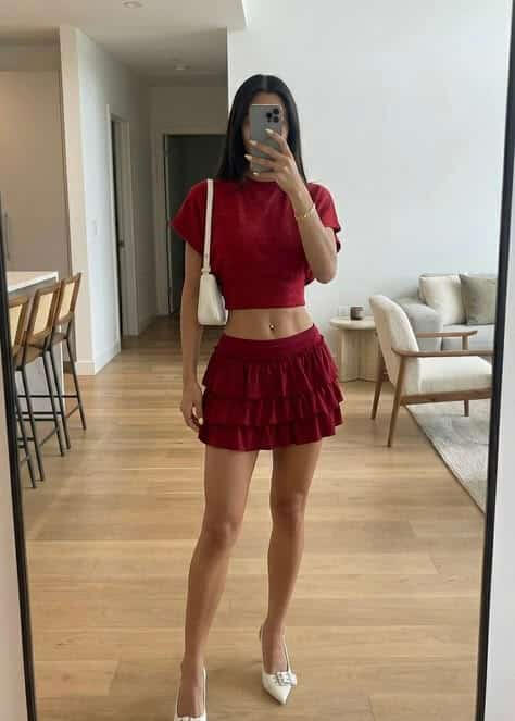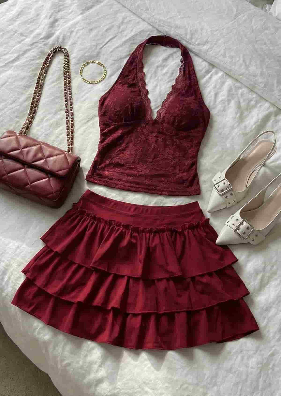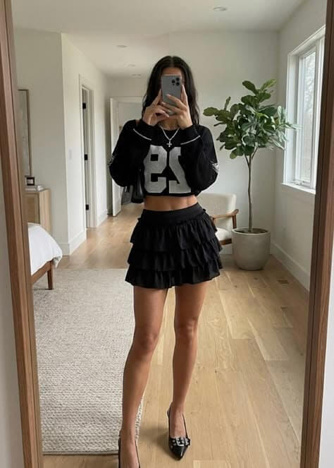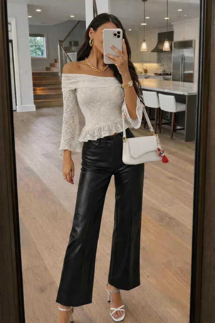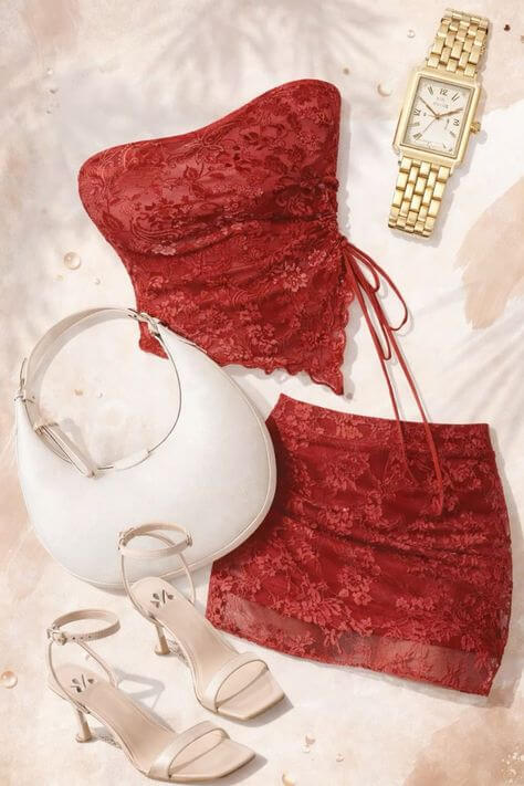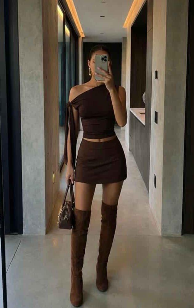 For club nights, drinks, girls’ nights, and date nights these outfits are the “main character” ones: cute, elevated, and made to turn heads without being too much. Think flattering fits, sleek fabrics, and those little details that make the whole look feel expensive in photos.You’ll find in this section:going-out tops, corset vibes + matching setsmini skirts, leather looks, and dresses.boots/heels, bags, and jewelry that pull everything togetheroptions for classy moods and bold nights